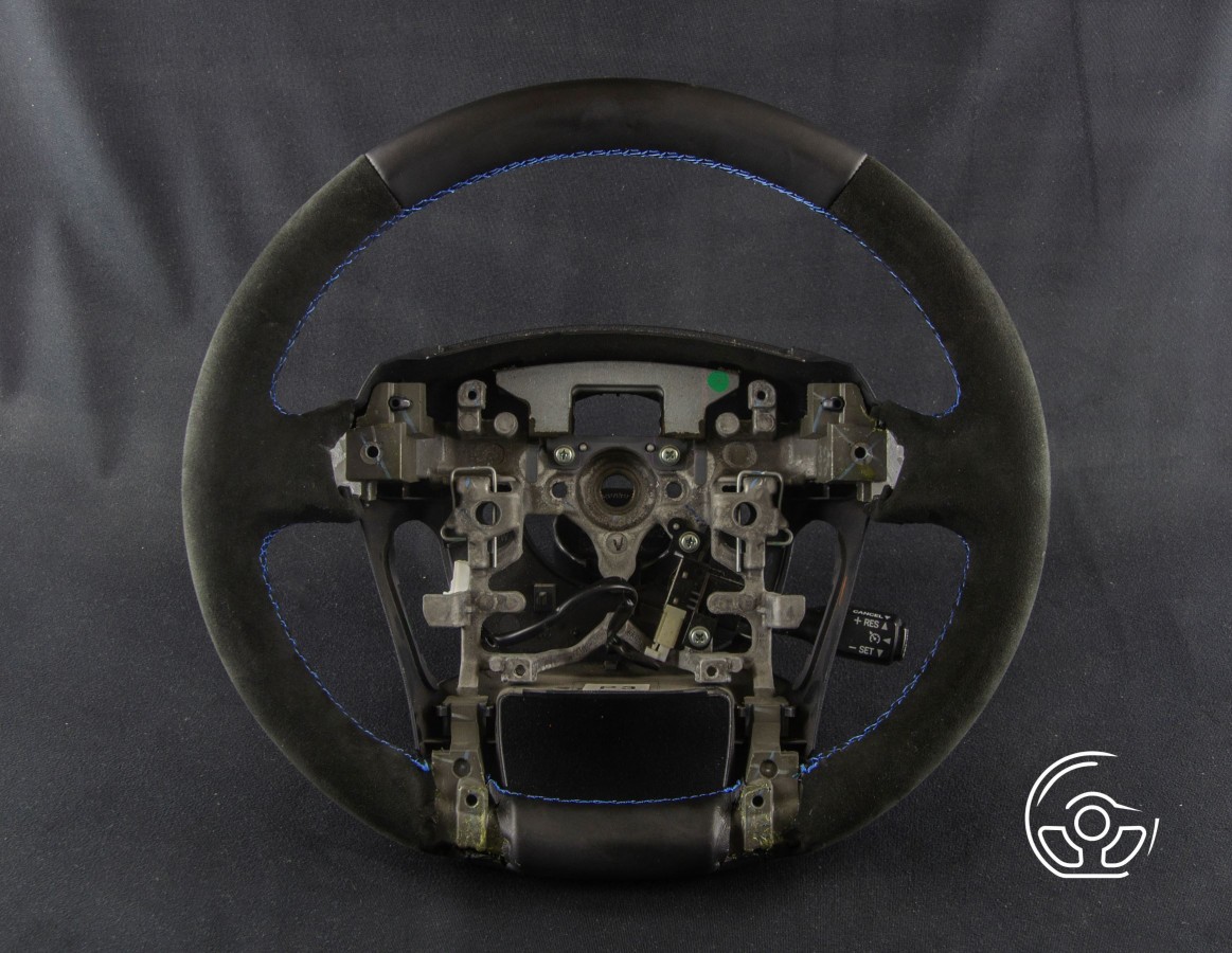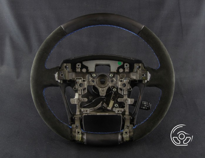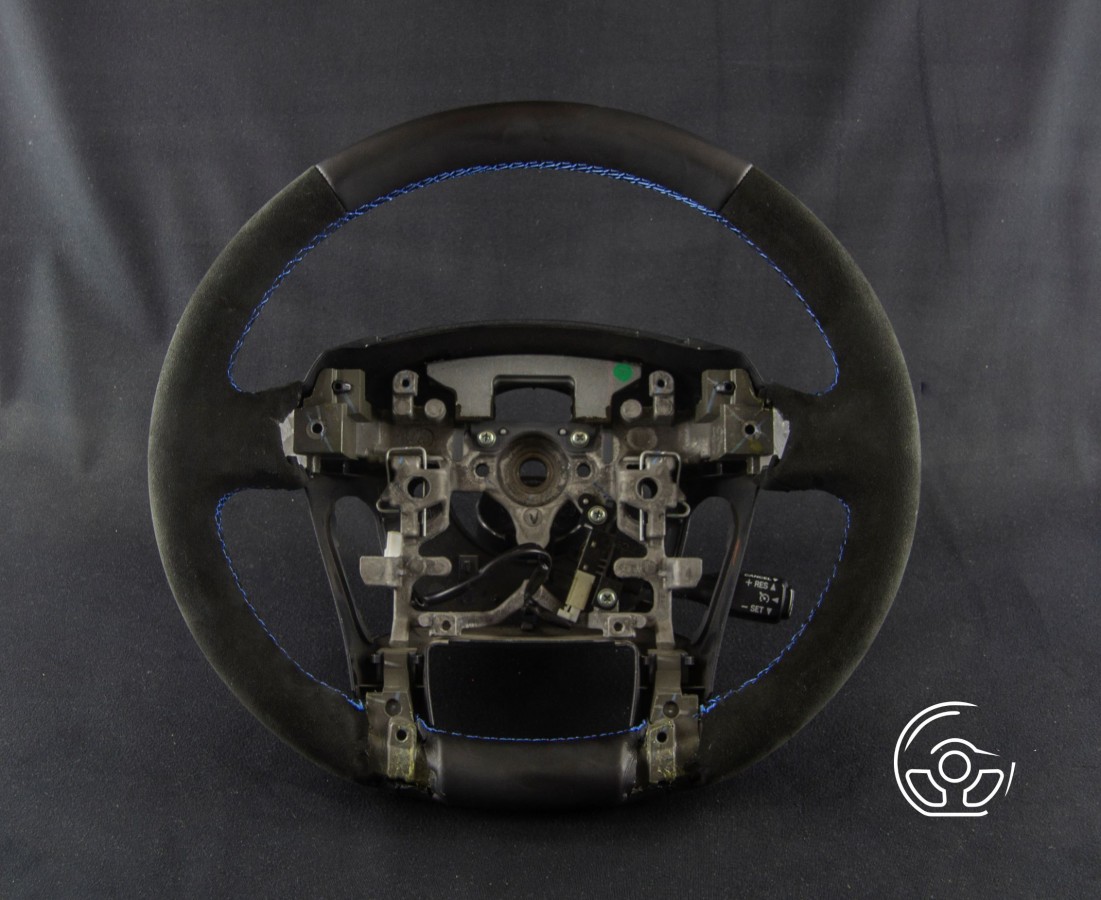 Toyota Prius Toyota Prius (2010 - 2015) Połączenie skóry gładkiej typu NAPPA i alcantary. Szycie niebieską nitką.